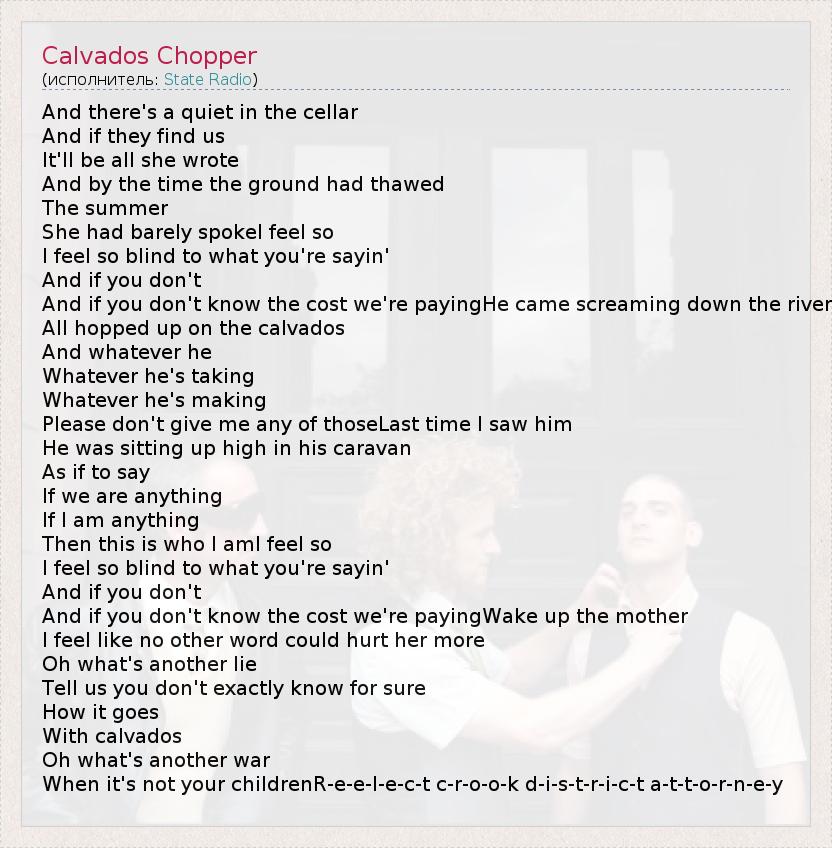 А как ты думаешь, о чем песня "Calvados Chopper" ?