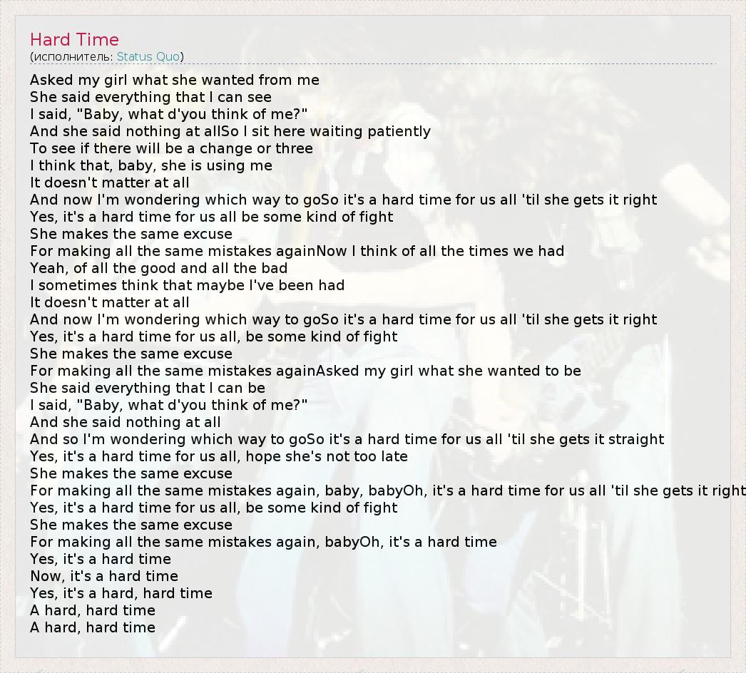 А как ты думаешь, о чем песня "Hard Time" ?