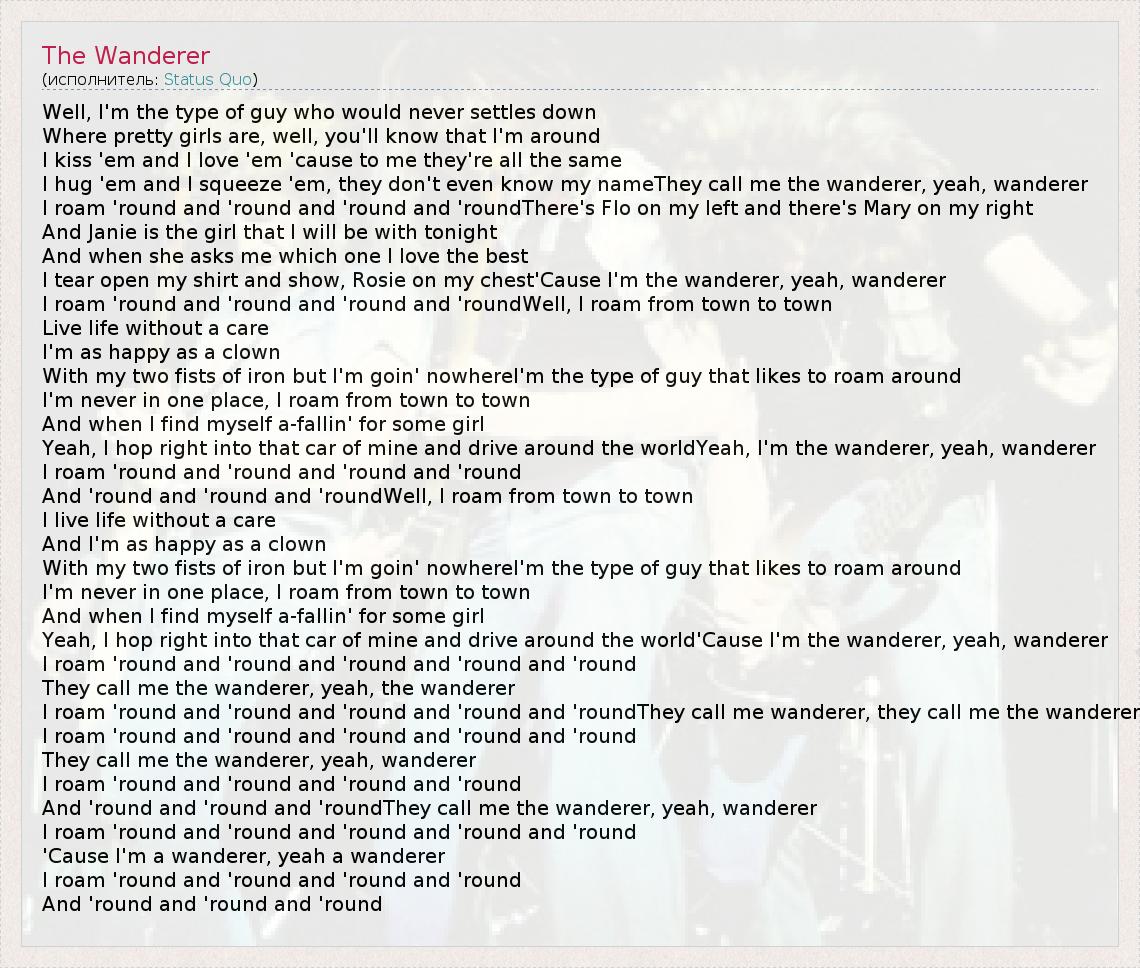 А как ты думаешь, о чем песня "The Wanderer" ?