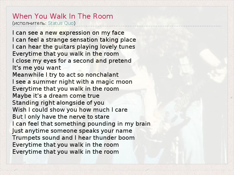 А как ты думаешь, о чем песня "When You Walk In The Room" ?