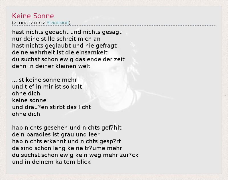 А как ты думаешь, о чем песня "Keine Sonne" ?