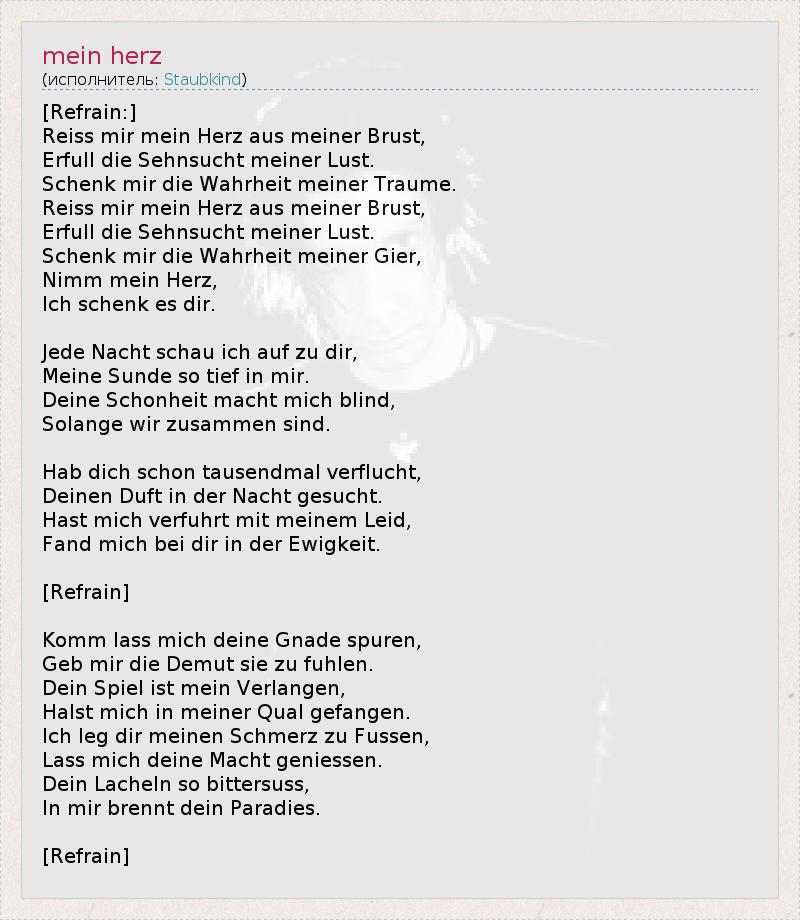 Это интересно:Творческий соло-проект Луиса Манке (Louis Manke) (гитариста из Terminal Choice), созданный в 2003 году. Выпустил четыре альбома: "Traumfänger" (2004), "Zu Weit" (2007), "Staubkind" (2012) и "Alles Was Ich Bin" (2014).Притягательная, с доминирующим гитарным звучанием музыка; эмоциональная, идущая из недр души лирика; "надломленный" чувственный вокал…