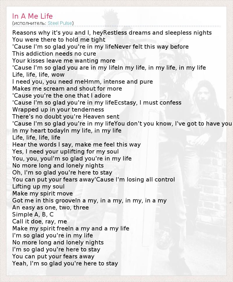 'Cause I'm so glad you are in my lifeIn my life, in my life, in my life