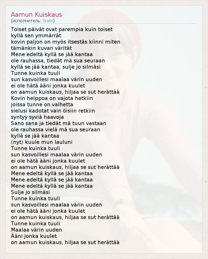 А как ты думаешь, о чем песня "Aamun Kuiskaus" ?