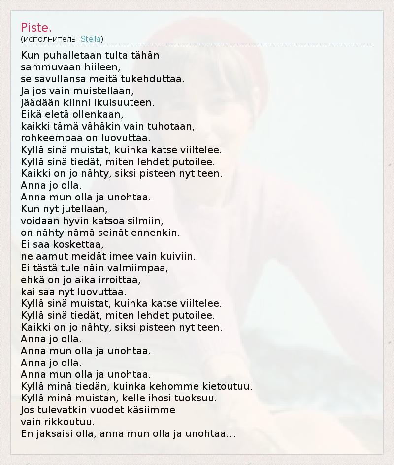 Kyllä sinä muistat, kuinka katse viiltelee.