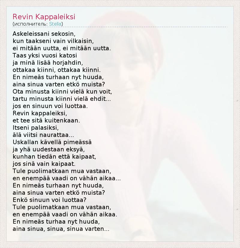 А как ты думаешь, о чем песня "Revin Kappaleiksi" ?