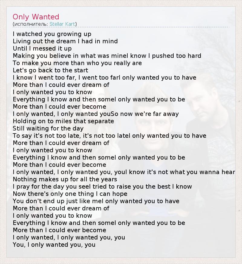 I only wanted, I only wanted you, youI know it's not what you wanna hear
