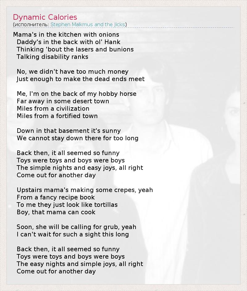 А как ты думаешь, о чем песня "Dynamic Calories" ?