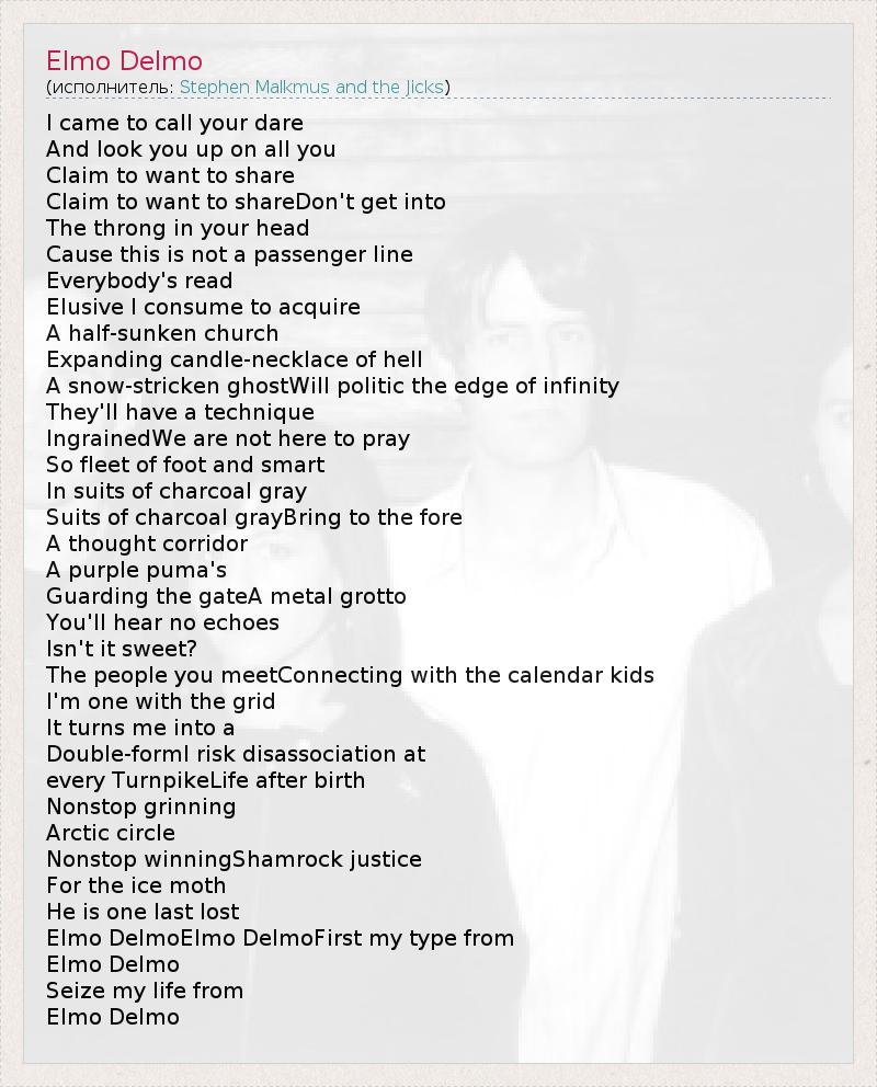 А как ты думаешь, о чем песня "Elmo Delmo" ?