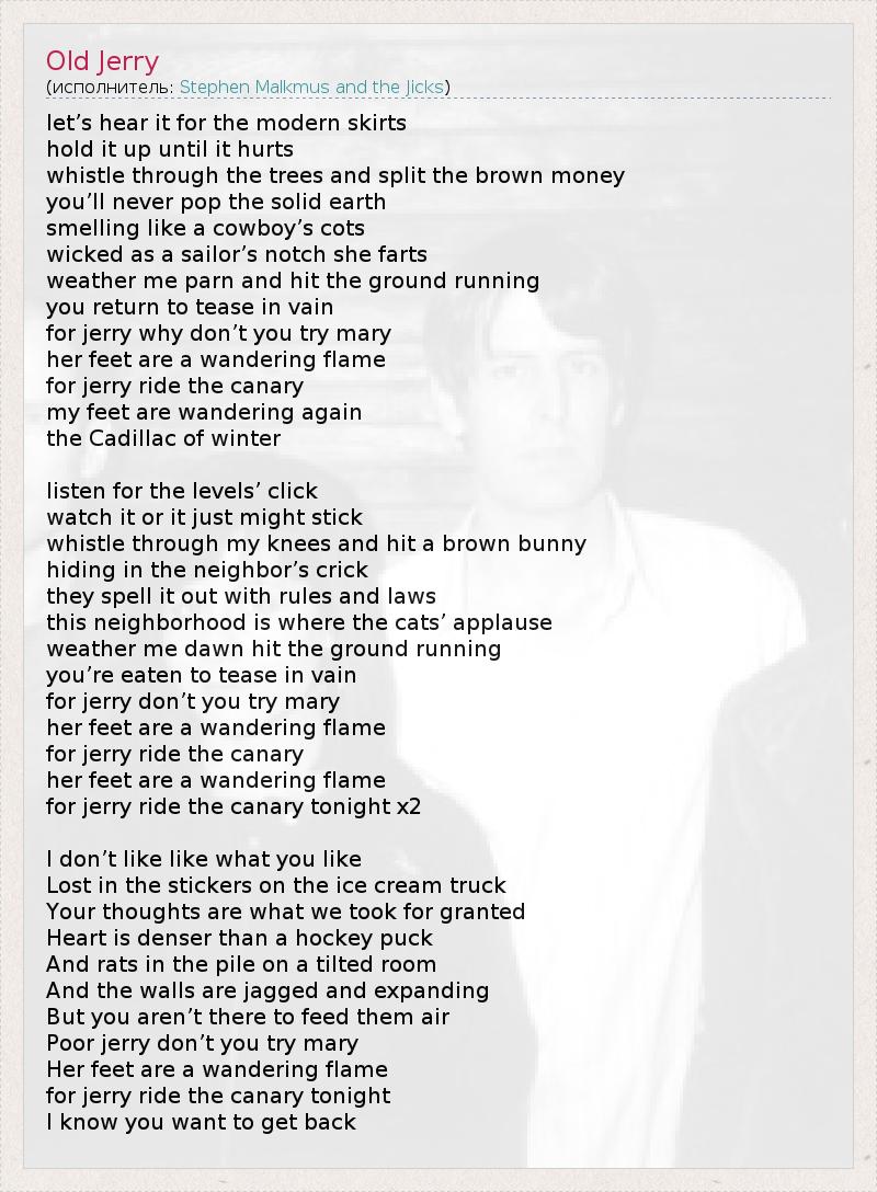 А как ты думаешь, о чем песня "Old Jerry" ?
