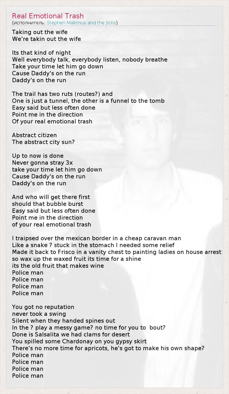 А как ты думаешь, о чем песня "Real Emotional Trash" ?