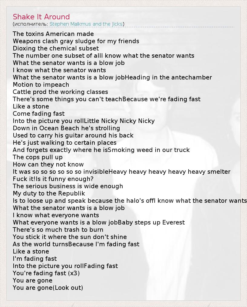 А как ты думаешь, о чем песня "Shake It Around" ?