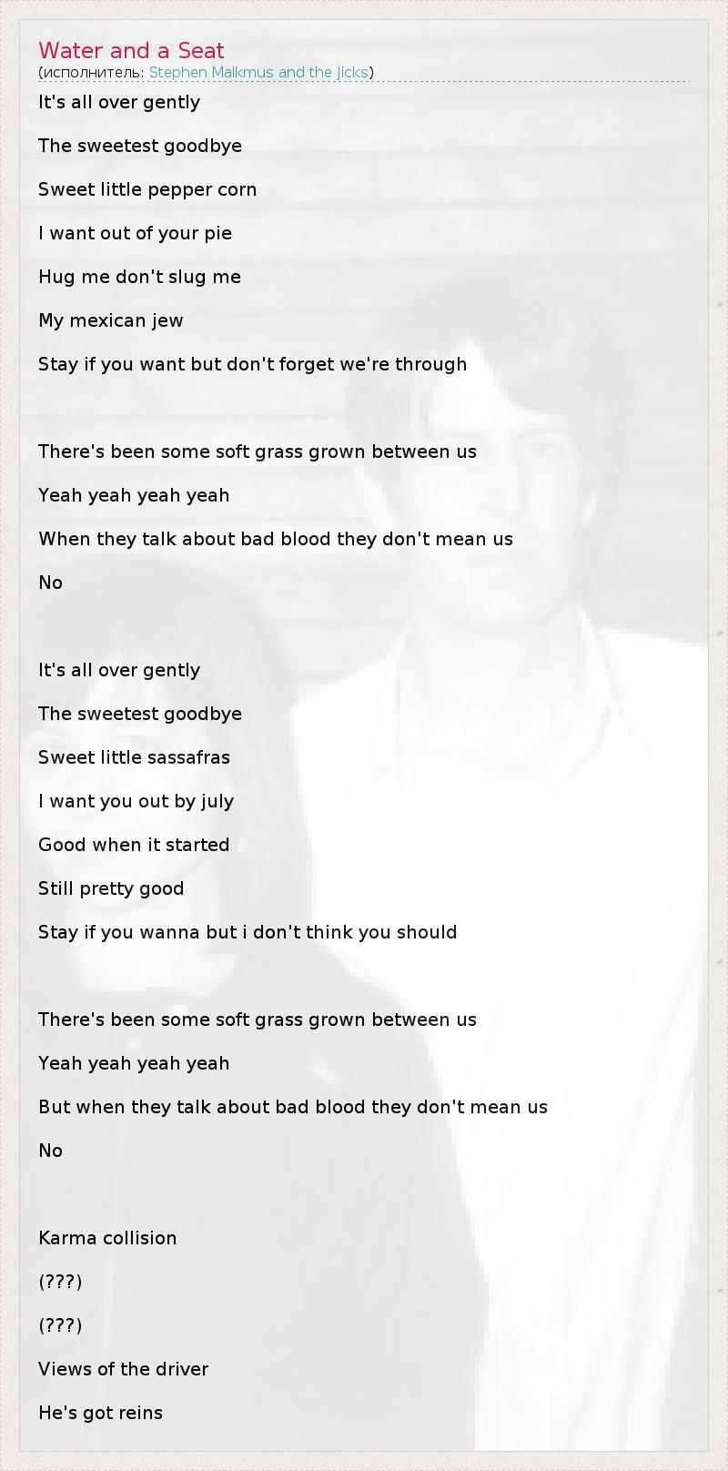 А как ты думаешь, о чем песня "Water and a Seat" ?