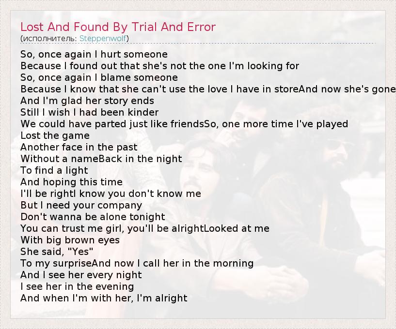 А как ты думаешь, о чем песня "Lost And Found By Trial And Error" ?