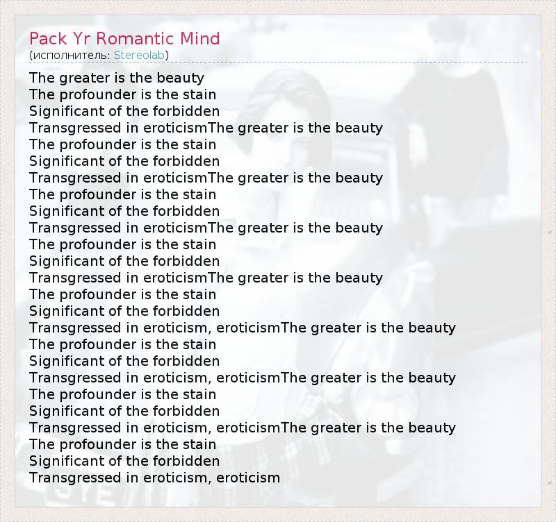 А как ты думаешь, о чем песня "Pack Yr Romantic Mind" ?