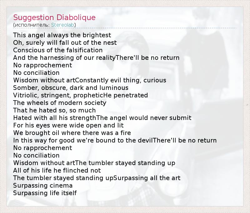 А как ты думаешь, о чем песня "Suggestion Diabolique" ?