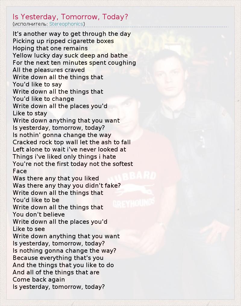 А как ты думаешь, о чем песня "Is Yesterday, Tomorrow, Today?" ?