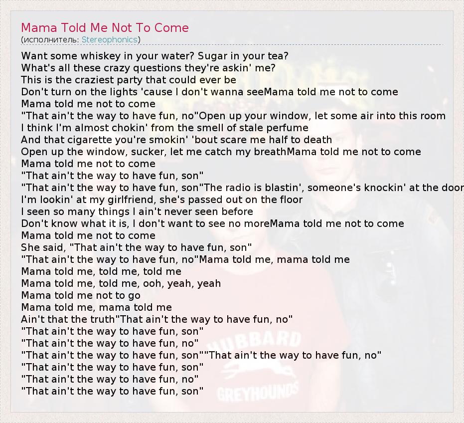 "That ain't the way to have fun, no"Mama told me, mama told me