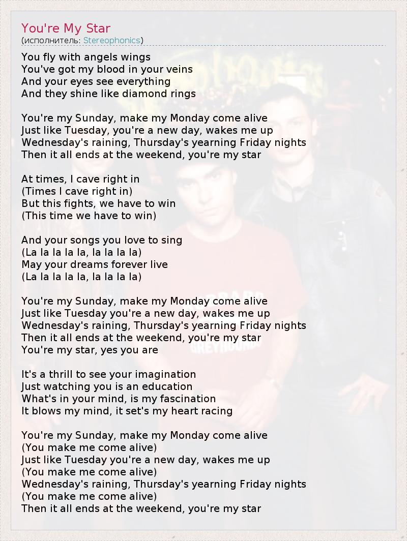 Ты - моё воскресенье, оживляешь меня в понедельник