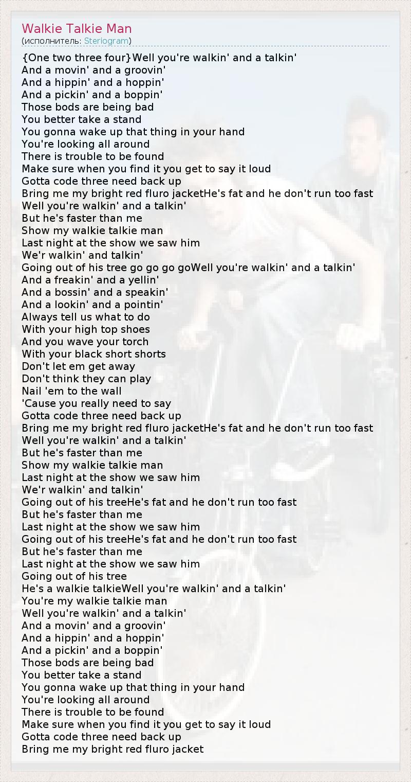 А как ты думаешь, о чем песня "Walkie Talkie Man" ?