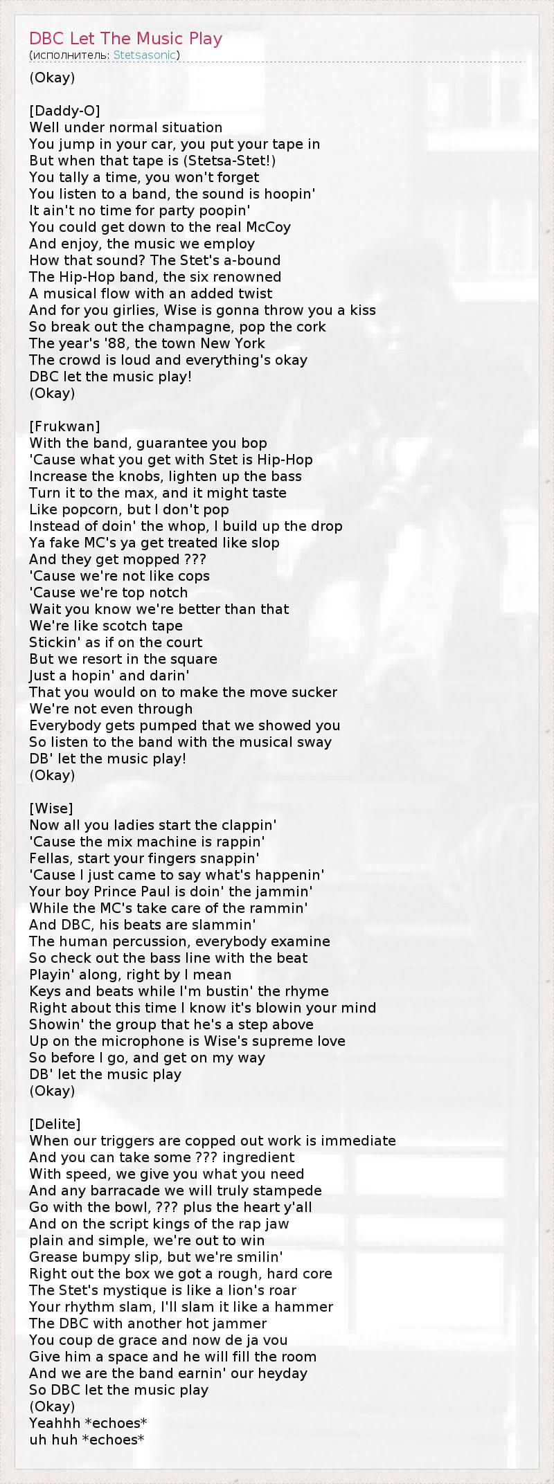 А как ты думаешь, о чем песня "DBC Let The Music Play" ?