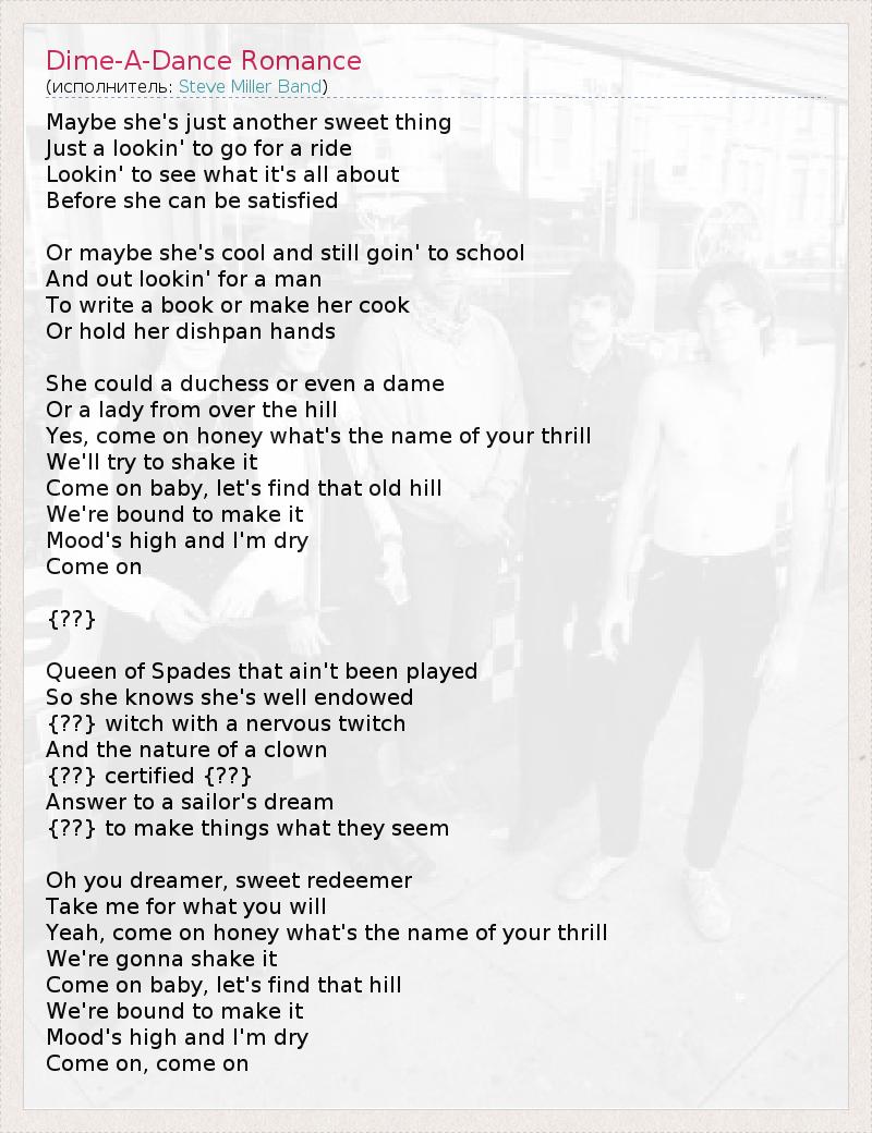 А как ты думаешь, о чем песня "Dime-A-Dance Romance" ?
