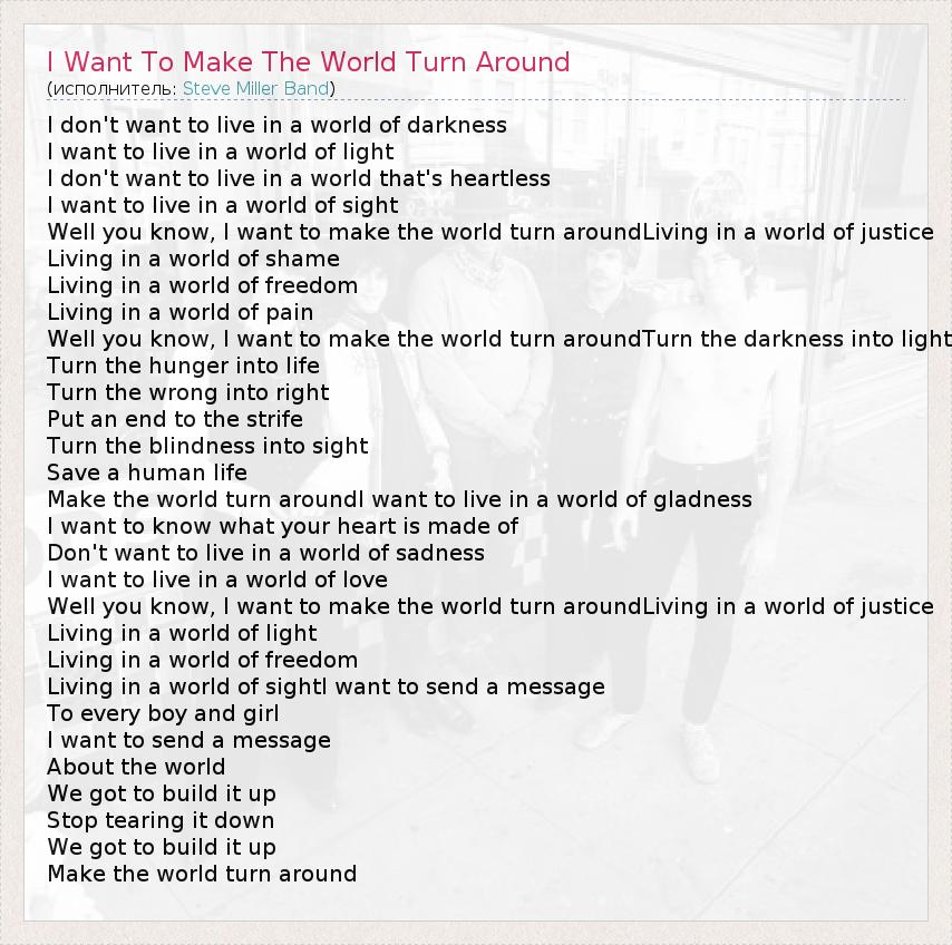 А как ты думаешь, о чем песня "I Want To Make The World Turn Around" ?