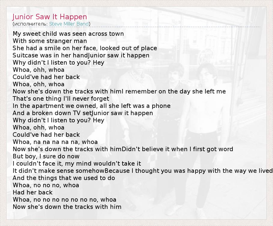 А как ты думаешь, о чем песня "Junior Saw It Happen" ?
