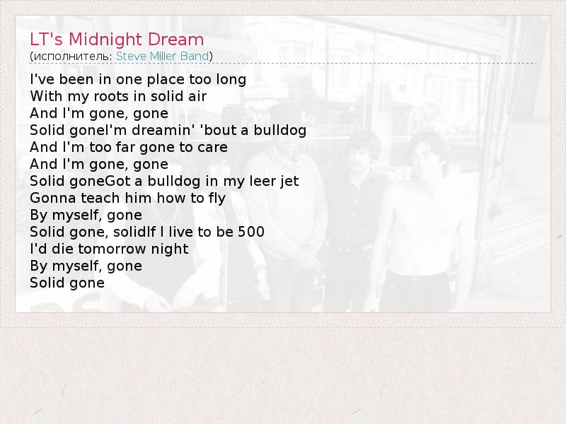 А как ты думаешь, о чем песня "LT's Midnight Dream" ?