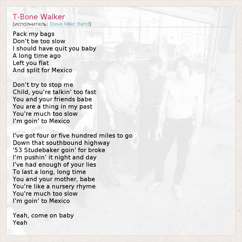 А как ты думаешь, о чем песня "T-Bone Walker" ?