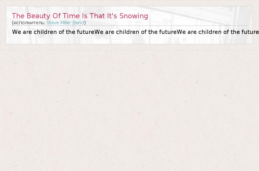 ГлавнаяИсполнителиSteve Miller BandThe Beauty Of Time Is That It's Snowing