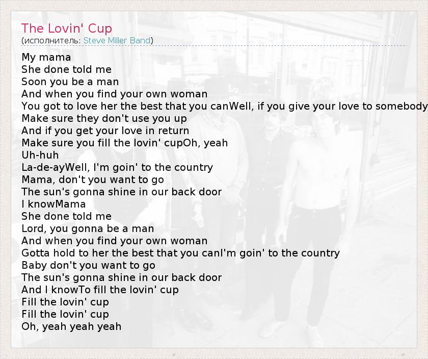 А как ты думаешь, о чем песня "The Lovin' Cup" ?