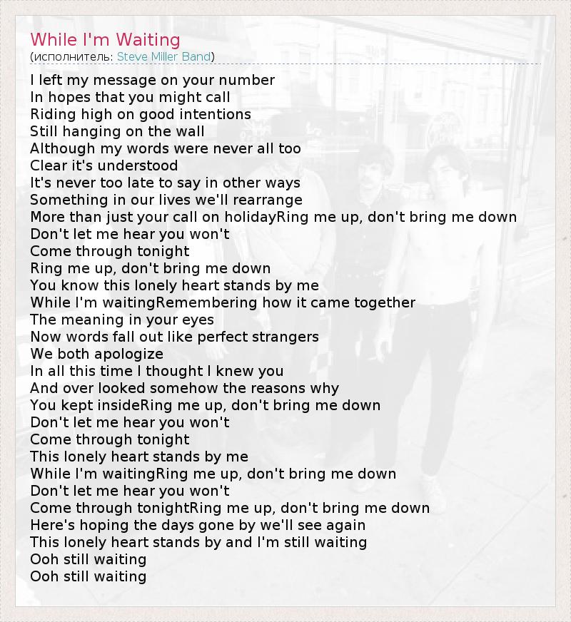 А как ты думаешь, о чем песня "While I'm Waiting" ?