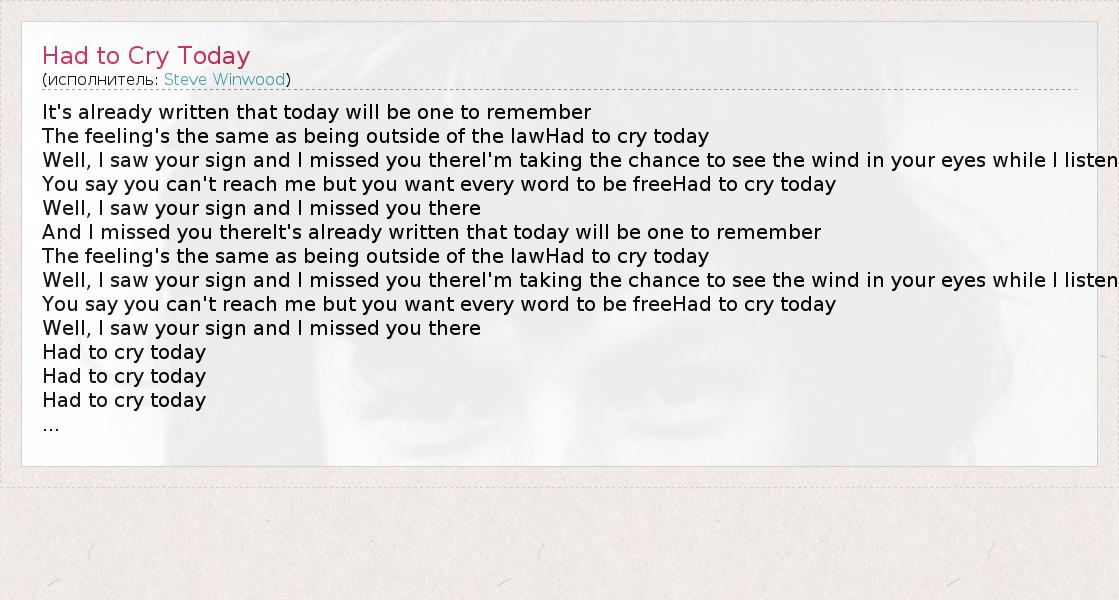 А как ты думаешь, о чем песня "Had to Cry Today" ?