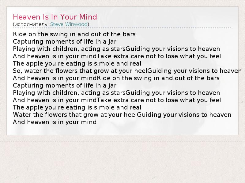 А как ты думаешь, о чем песня "Heaven Is In Your Mind" ?