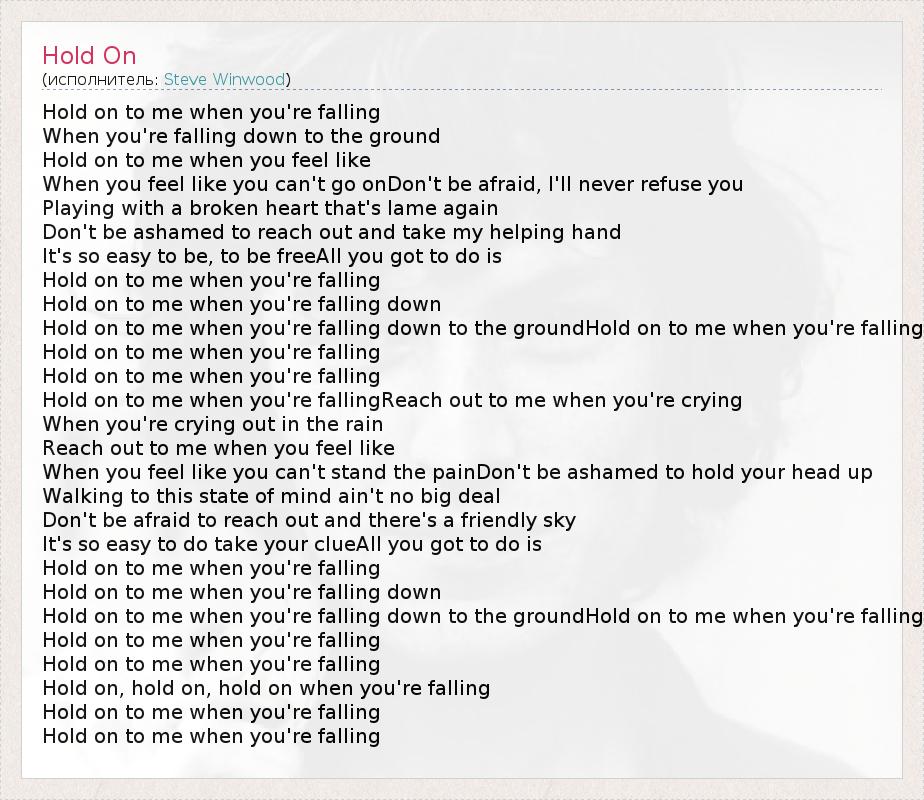 Hold on to me when you're falling down to the groundHold on to me when you're falling