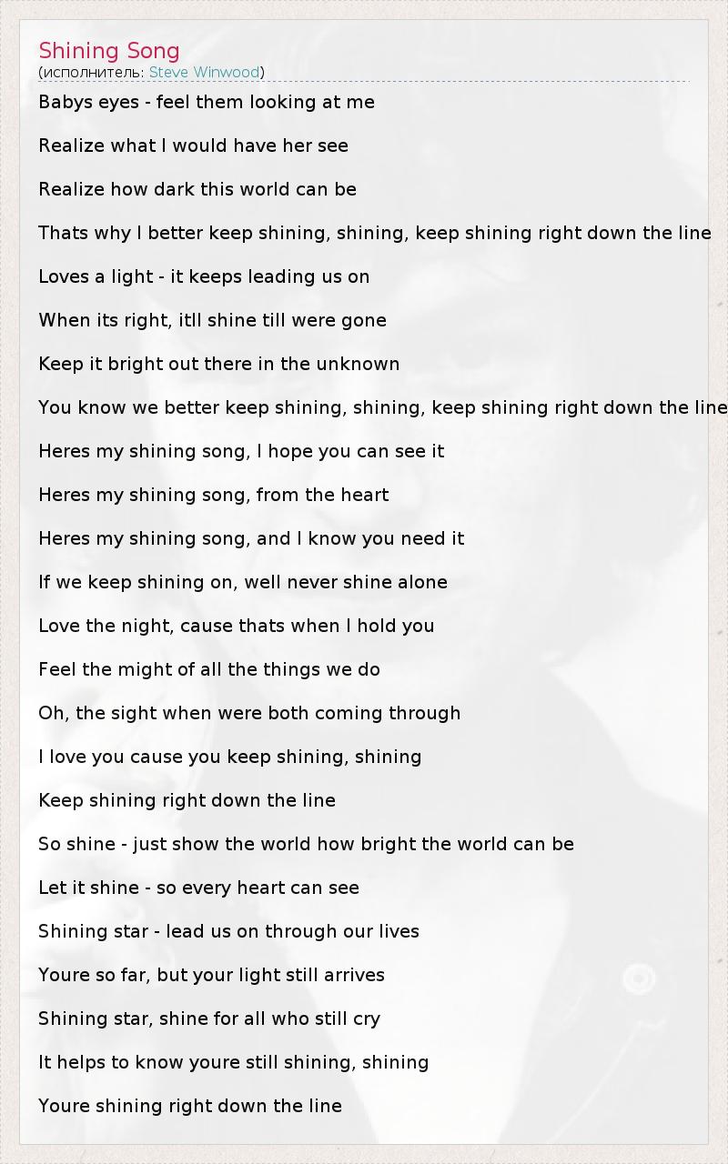 It helps to know youre still shining, shining