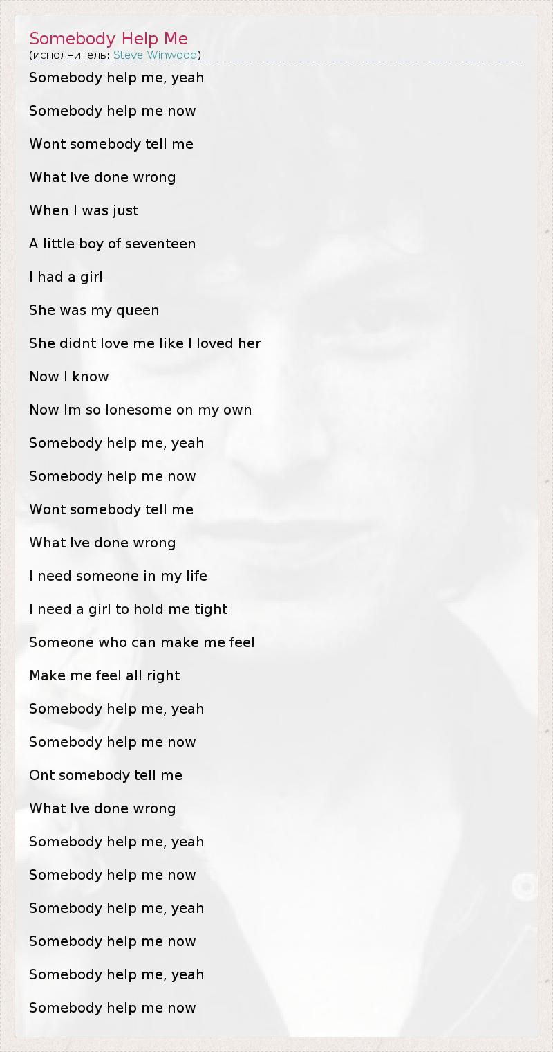 А как ты думаешь, о чем песня "Somebody Help Me" ?