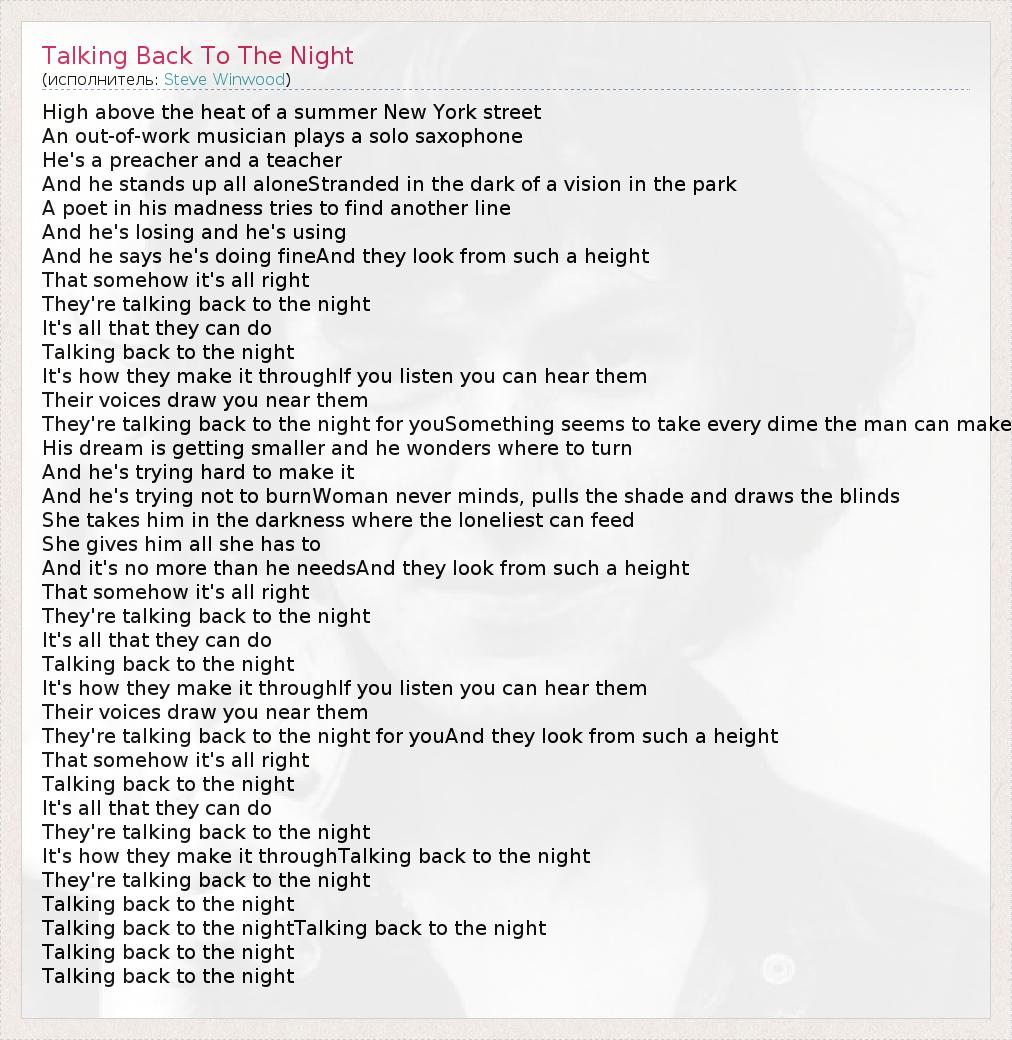 ГлавнаяИсполнителиSteve WinwoodTalking Back To The Night