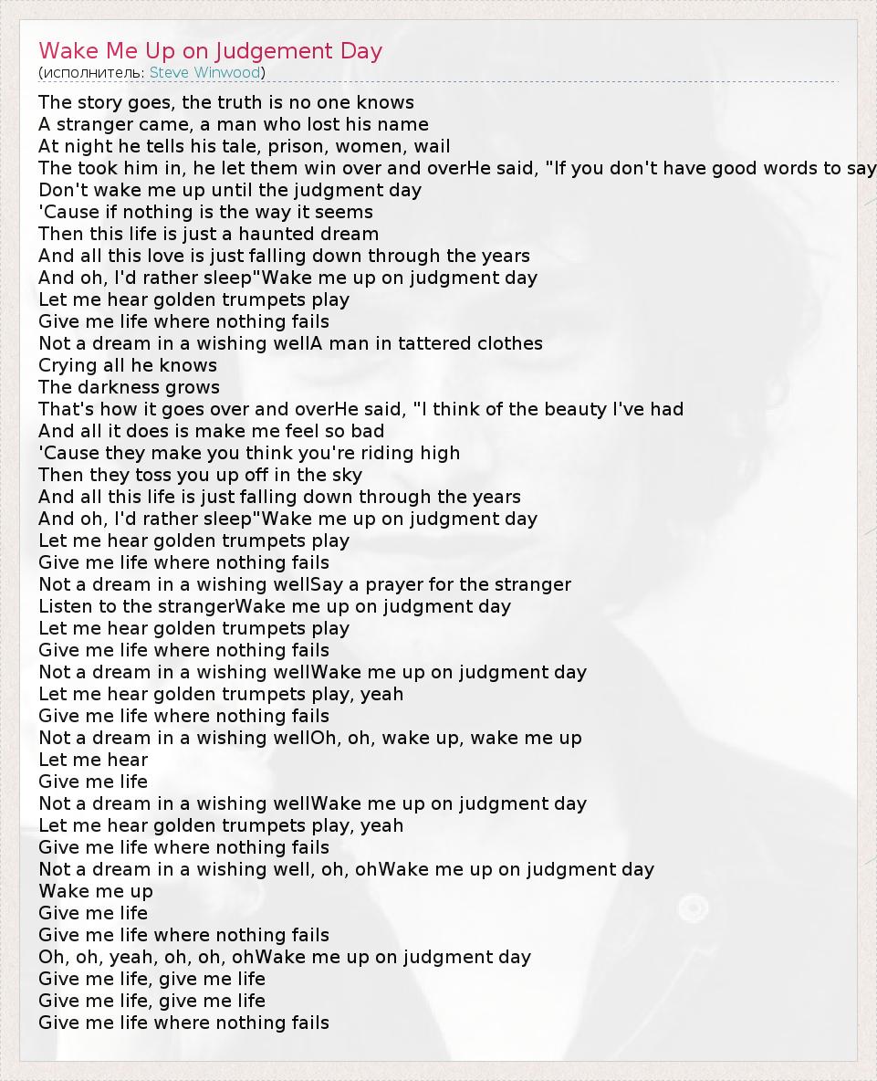 А как ты думаешь, о чем песня "Wake Me Up on Judgement Day" ?