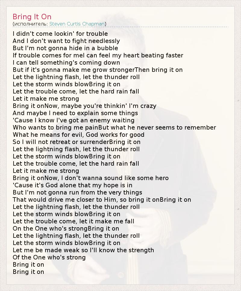 Bring it onNow, maybe you're thinkin' I'm crazy
