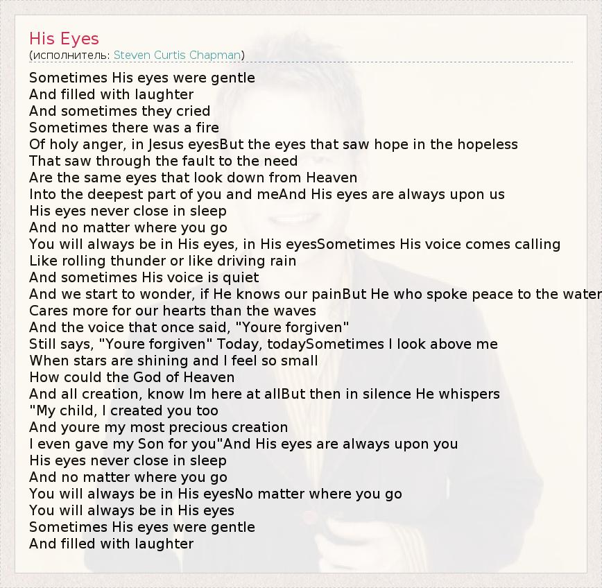 You will always be in His eyes, in His eyesSometimes His voice comes calling