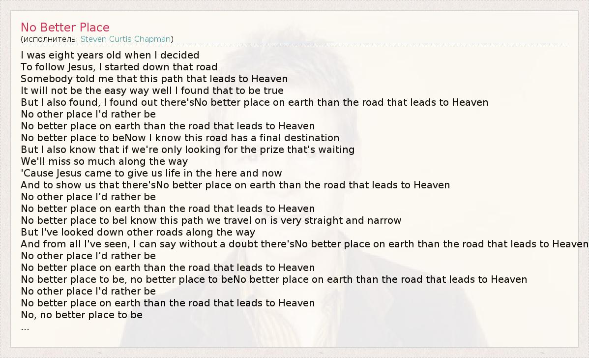 And from all I've seen, I can say without a doubt there'sNo better place on earth than the road that leads to Heaven