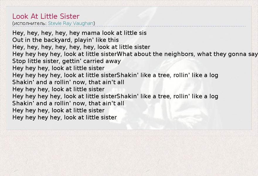 А как ты думаешь, о чем песня "Look At Little Sister" ?