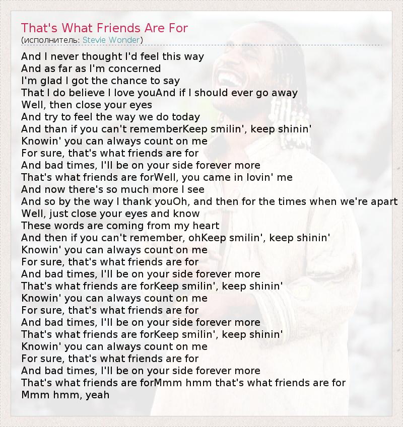 А как ты думаешь, о чем песня "That's What Friends Are For" ?