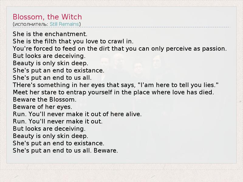 А как ты думаешь, о чем песня "Blossom, the Witch" ?