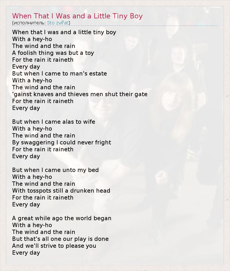 ГлавнаяИсполнителиSto zvířatWhen That I Was and a Little Tiny Boy