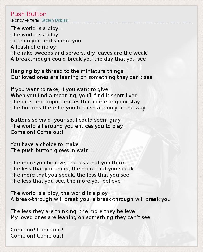 Это интересно:Stolen Babies - группа из Калифорнии, США, играющая avant-garde metal с элементами панка, готики и дарк кабаре. В ее составе: Dominique Lenore Persi – вокал, аккордеон; Rani Sharone – бас-гитара; Gil Sharone - ударные. Барабанщик Gil Sharone, также играл в маткор-команде The Dillinger Escape Plan.Группа сформировалась в 2002 году, но играть музыку они начинали в старших классах школы под именем The Fratellis, записав одноименную кассету еще в 1996... продолжение
