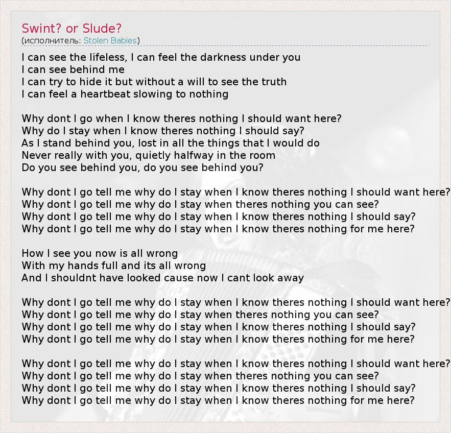 А как ты думаешь, о чем песня "Swint? or Slude?" ?