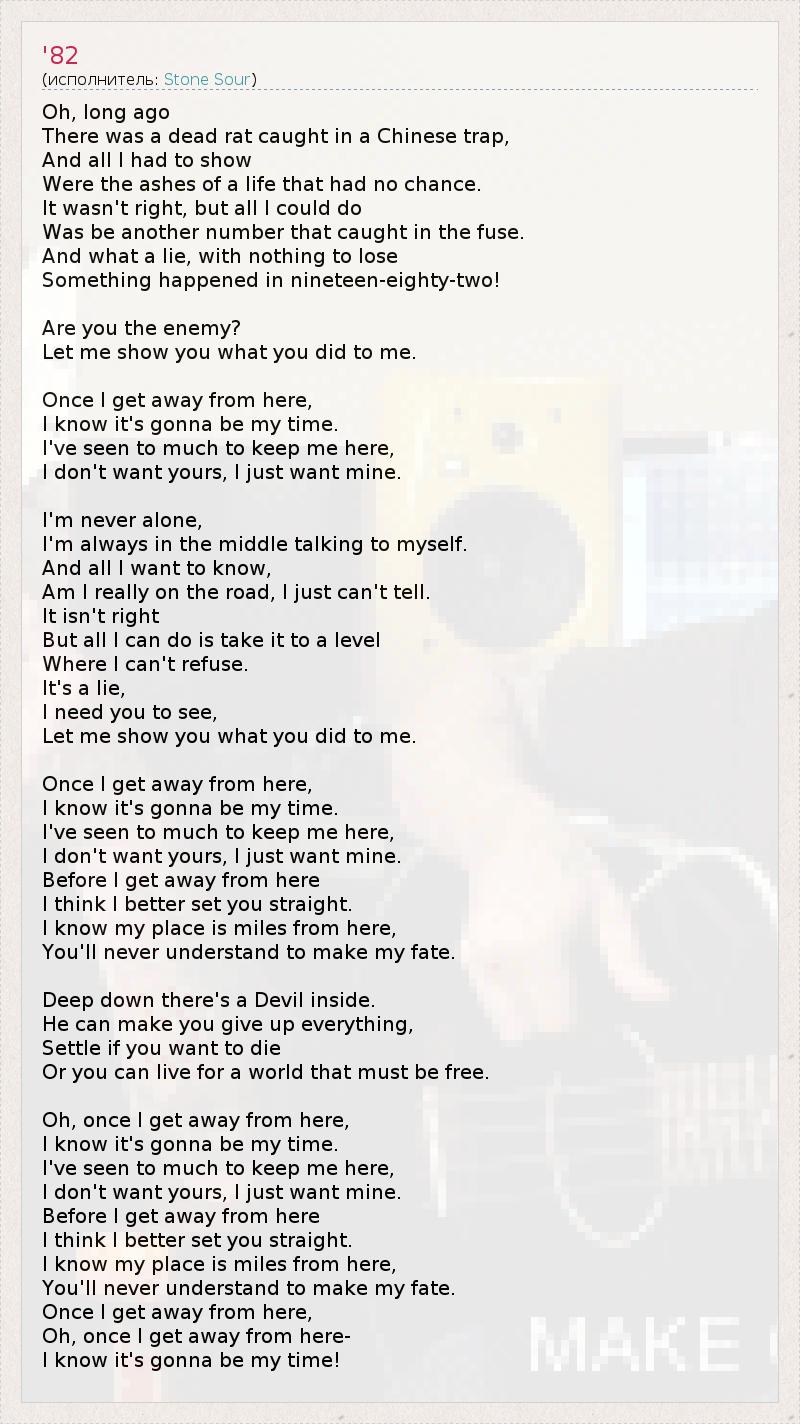 Это интересно:Stone Sour - музыкальная группа из США (Де-Мойн, штат Айова), играющая в стиле «альтернативный метал». Её основатели - Кори Тейлор, ставший знаменитым как вокалист группы Slipknot, Джеймс Рут - гитарист Slipknot, а также бывший барабанщик Soulfly Рой Майорга.Перво-наперво Stone Sour - это алкогольный коктейль, состоящий из виски, апельсинового сока и sour mix (по-русски «Отвертка»). Видимо, во время распития нескольких... продолжение